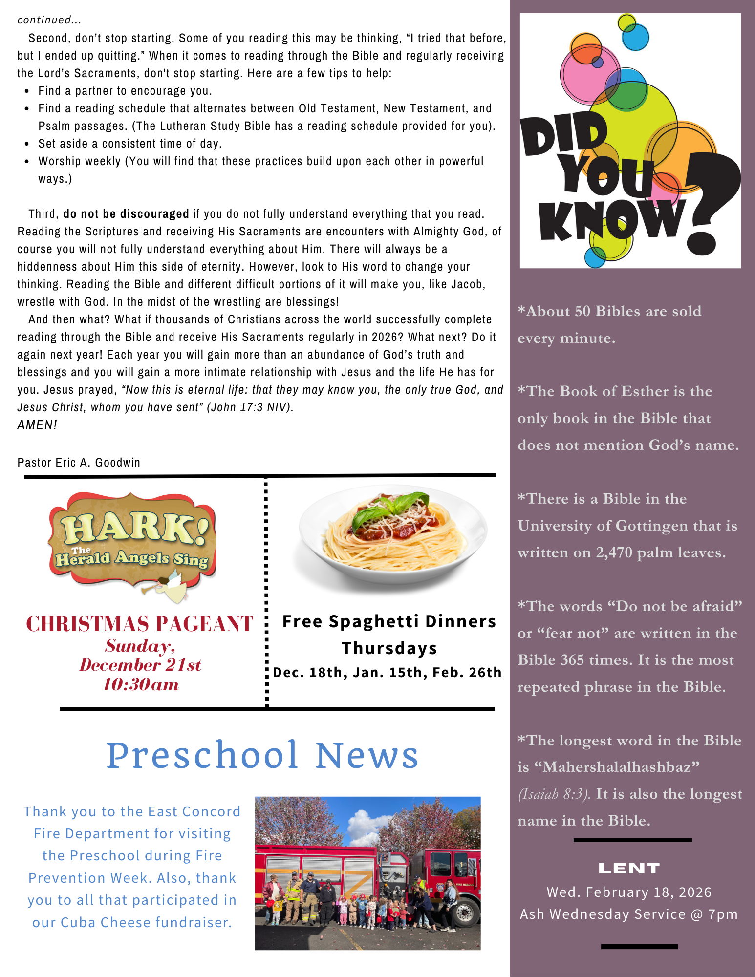 - Wednesdays at 1 PM: Adult Bible Study (Meeting House – downstairs)
